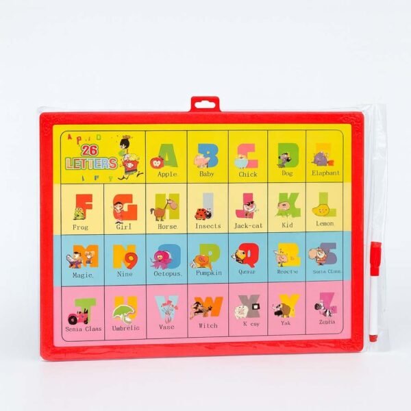 A fun and educational 2-in-1 learning tool for kids! One side helps children recognize and arrange alphabet letters, while the whiteboard side encourages creativity and writing practice with the included erasable pen. Perfect for early learning and interactive play.”